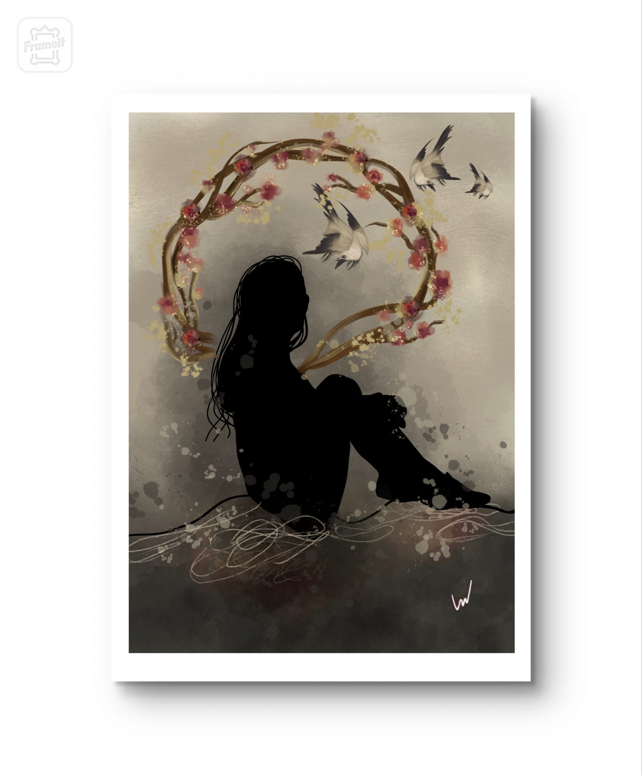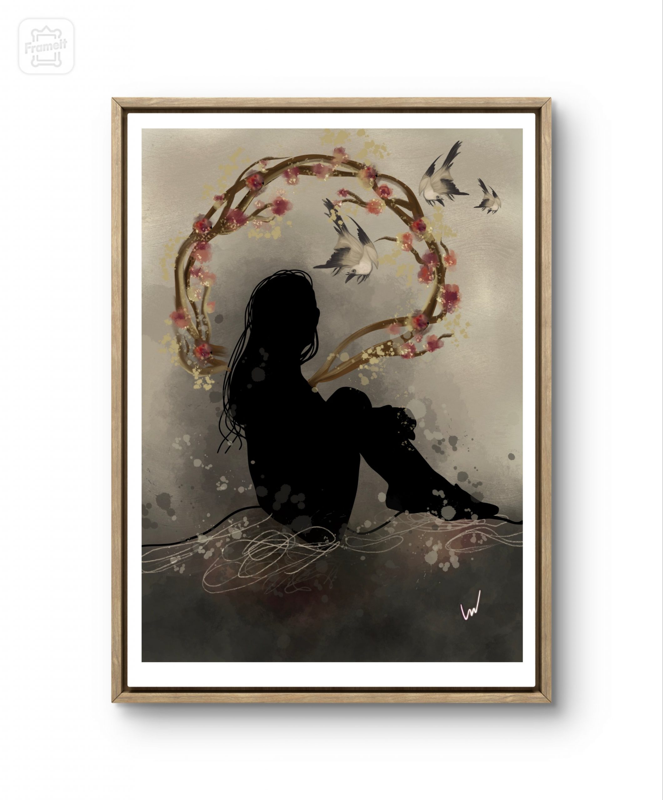 Auteur= Valérie Voiment Titre= La tête ailleurs Thème= Silhouettes Format= 29.7x40cm