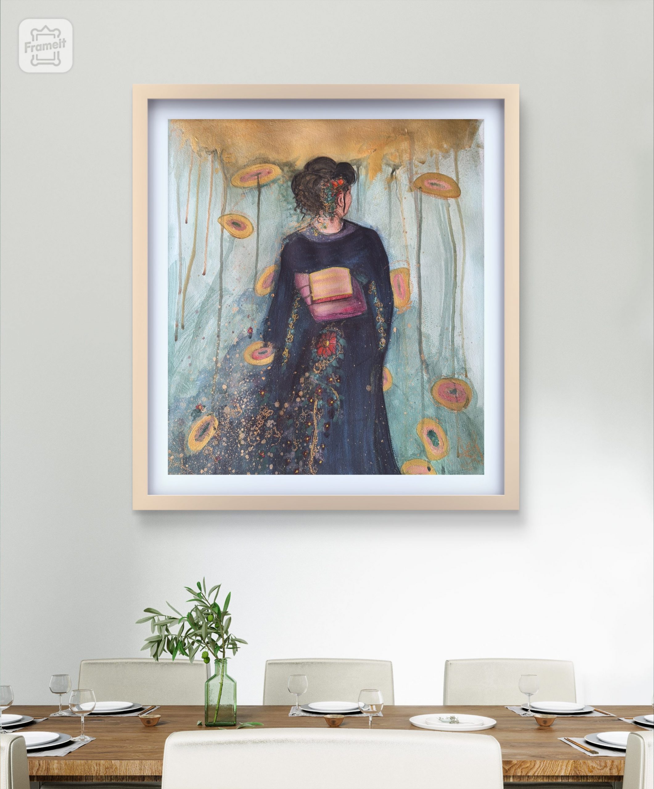 Auteur= Valérie Voiment Tableau original Titre= Geïsha 1 Format= 50×56.5cm avec certificat d’authenticité